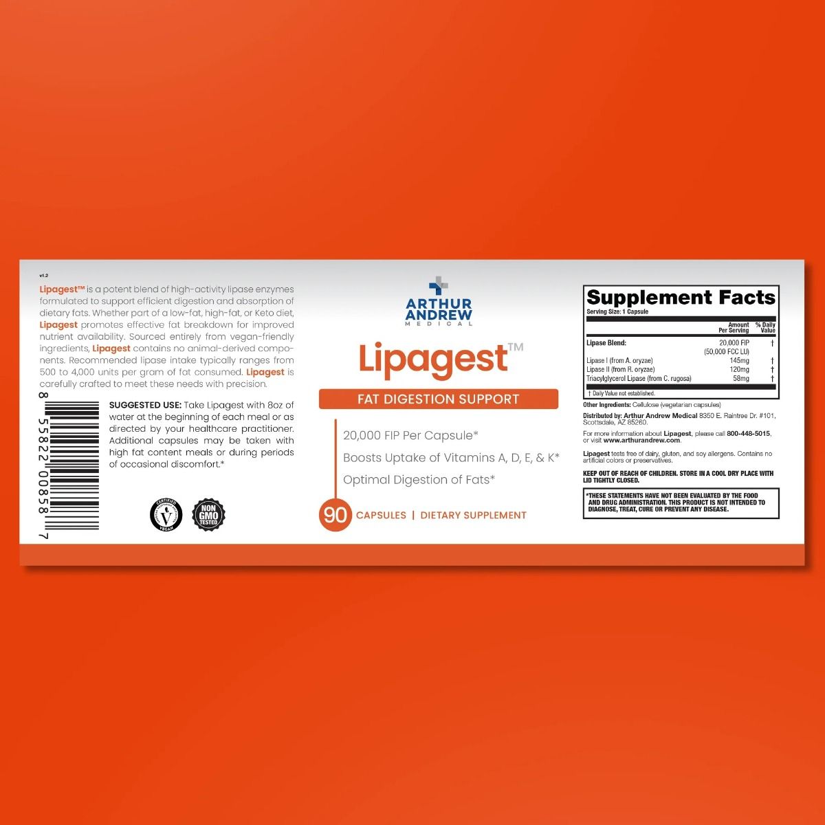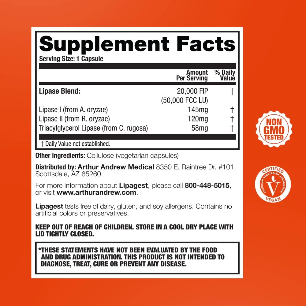 Lipagest® (180 capsules) | Geavanceerd lipase-enzymcomplex voor vetvertering en opname – Arthur Andrew