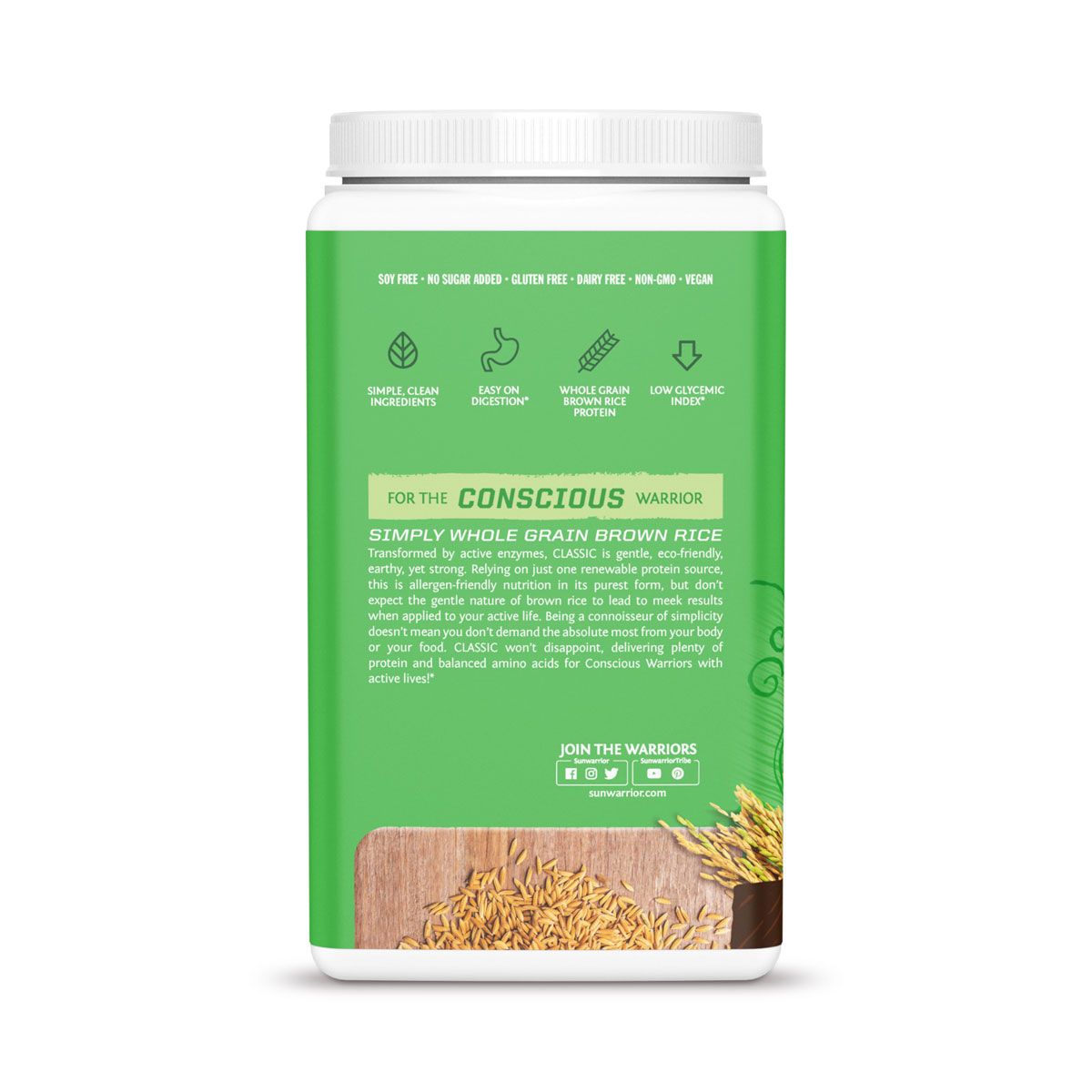 De Classic-lijn van Sunwarrior is gebaseerd op één enkele eiwitbron: bruine rijst. Hierdoor is het licht verteerbaar en zeer geschikt voor mensen die gevoelig zijn voor complexe blends of allergenen. De chocoladevariant is gezoet en op smaak gebracht met natuurlijke ingrediënten, wat zorgt voor een zachte smaak zonder overdreven zoet te zijn.