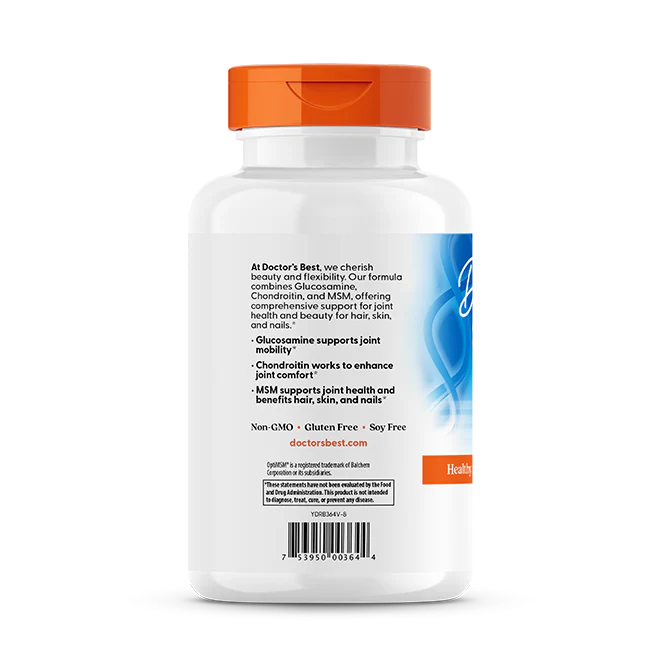 Doctor’s Best Glucosamine Chondroitin MSM is een voedingssupplement dat drie stoffen combineert die vaak samen worden gebruikt: glucosaminesulfaat (afkomstig uit plantaardige fermentatie), chondroïtinesulfaat (uit rund), en MSM in de vorm van OptiMSM® – een gepatenteerde en gedestilleerde vorm van methylsulfonylmethaan.