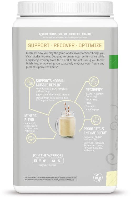 Door te kiezen voor Sunwarrior Activeprotein Vanille vul jij jouw dagelijkse eiwitbehoefte op een natuurlijke en smakelijke manier aan. Het helpt je herstel na trainingen te bevorderen en draagt bij aan een gezond, energiek leven, zodat jij jouw doelen op een verantwoorde wijze kunt nastreven.