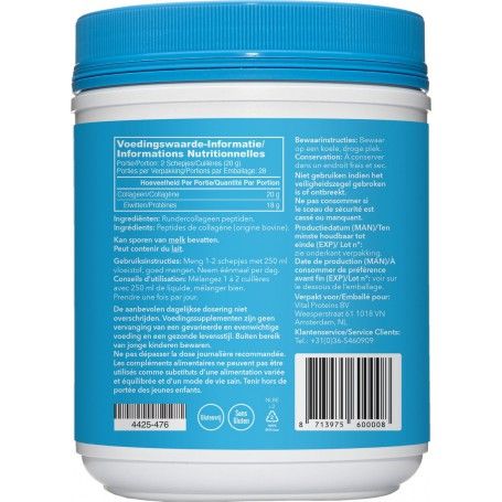 Of je nu een actieve levensstijl hebt, bewust met voeding bezig bent of gewoon een praktische manier zoekt om extra eiwitten en bouwstoffen toe te voegen, Vital Proteins Collageen Peptiden past moeiteloos in jouw routine. Bestel vandaag nog en ervaar zelf hoe eenvoudig het is om hoogwaardige collageenpeptiden aan je dagelijkse voeding toe te voegen.